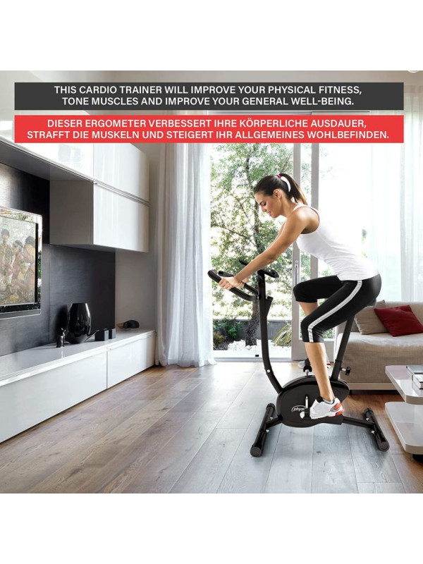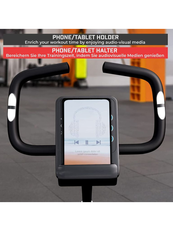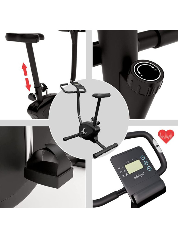 Vďaka kompaktným rozmerom je tento rotoped ideálny do malých priestorov. Fitness bicykel s premenlivým odporom umožňuje efektívne vytrvalostný tréning užívateľom s maximálnou hmotnosťou až 100 kg. Sedadlo fitness kola možno vertikálne nastaviť do rôznych výškových úrovní.