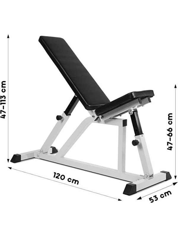 Stabilná konštrukcia z oceľových rúrok a pohodlný chrbtový vankúš sú základom pre Váš cielený tréning. Vyskúšajte rôzne možnosti tréningu: od Military Pressu (tréning ramien s vertikálnym operadlom) až po šikmý a plochý bench press - táto tréningová lavica sa stane Vaším fitness nástrojom číslo jedna. Vďaka podrobnému návodu na montáž ju doma zostavíte behom chvíľky. Vďaka svojim kompaktným rozmerom nezaberá príliš veľa miesta a pomáha Vám získať alebo udržať kondíciu.