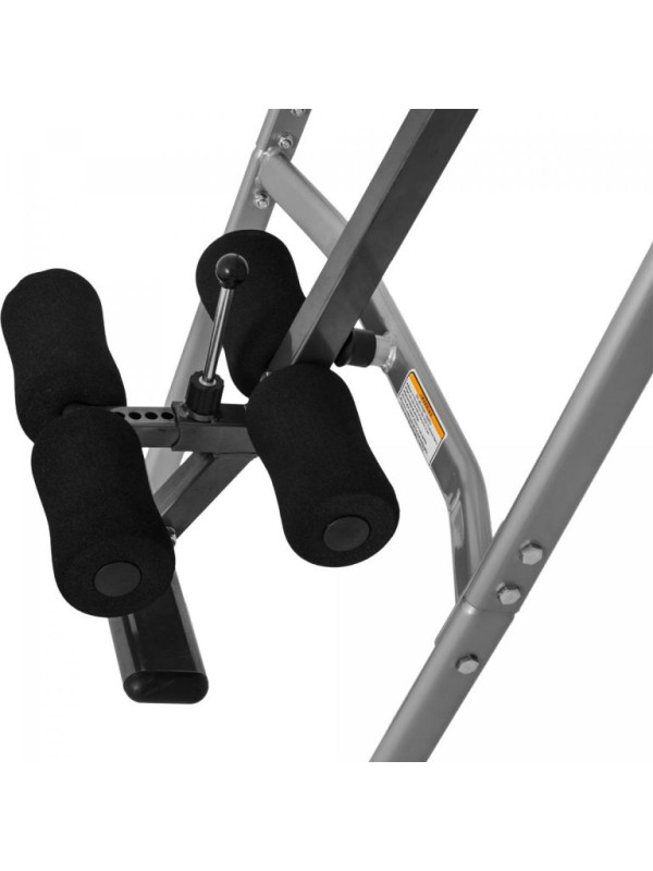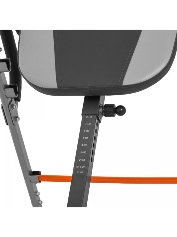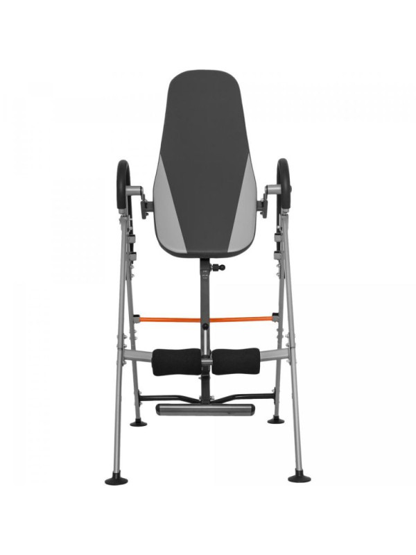 Keď zariadenie nepotrebujete, zložíte gravitačný trenažér, aby ste ušetrili miesto, a umiestnite ho do rohu. Jeho športový dizajn s čiernou, sivou a oranžovou farbou sa hodí do akéhokoľvek tréningového prostredia. Samotný váži 30 kg a má maximálnu nosnosť 110 kg. Jeho rozmery v rozloženom stave sú 98 x 65,5 x 152,5 cm. Chrbtová podložka má rozmery 48 x 110 cm.