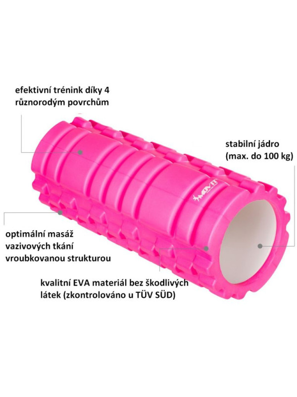 Posilňovací masážny valec - FITNESS ROLLER MOVIT ružová