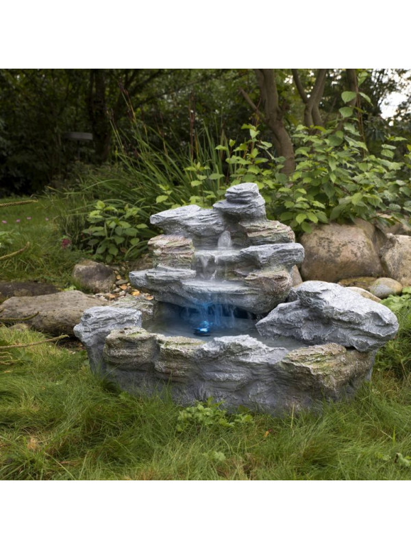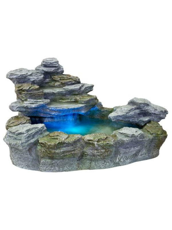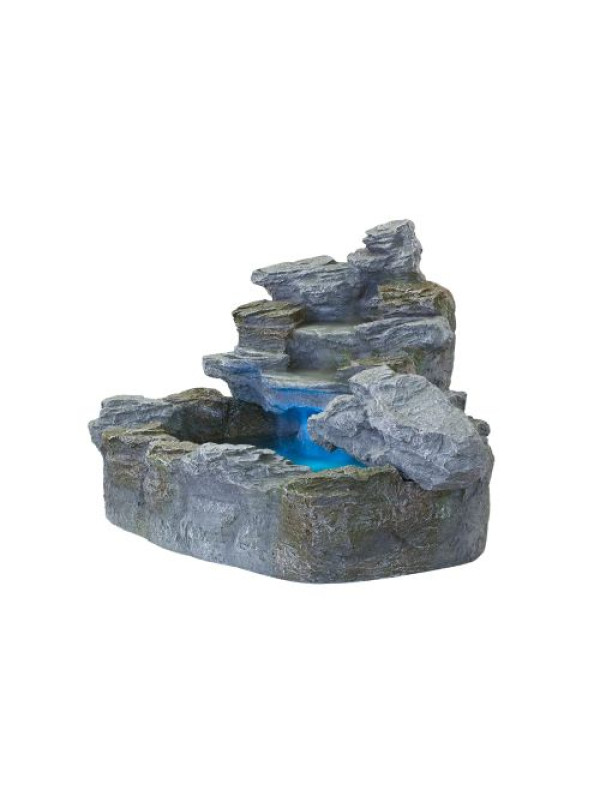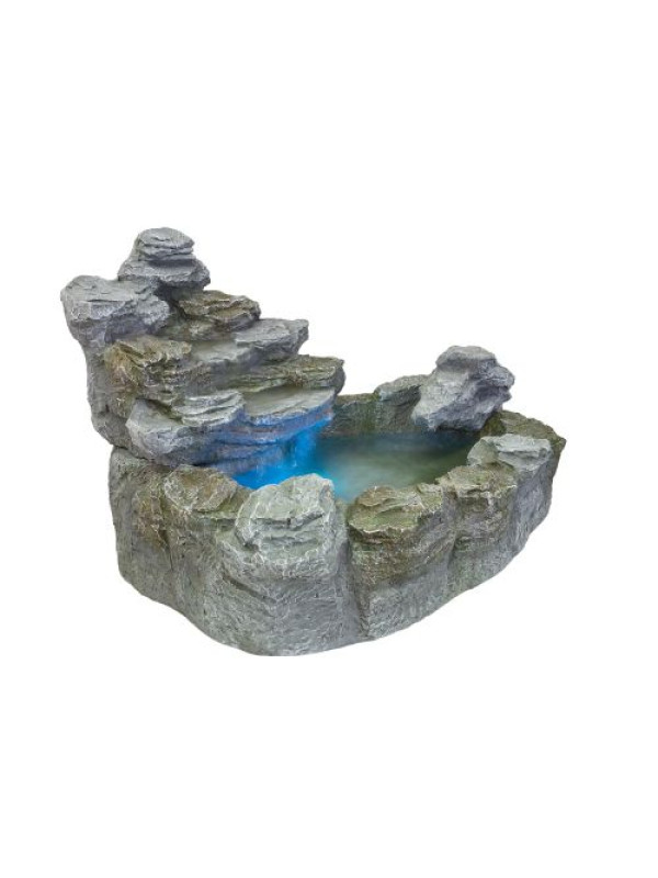 Táto okrasná fontána je vhodná do exteriéru aj interiéru. Urobí Vám radosť na terase, záhrade či balkóne. Zvláštnosťou je podvodný reflektor, ktorý je dodávaný so 4 farebnými diskami: červeným, modrým, žltým a zeleným. Hladko bežiace, nastaviteľné čerpadlo zaisťuje slušnú rýchlosť výmeny vody. Fontána je vyrobená z polyresinu, ktorý je veľmi odolný a len ťažko sa dá rozoznať od skutočného kameňa. Voda je cirkulovaná pomocou čerpadla.