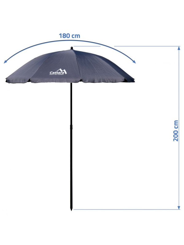 Dĺžka "polomeru" slnečníka je 180 cm a celková výška 200 cm. Dvojdielna konštrukcia je skladná a ľahko zložiteľná. Stačí do seba zasunúť obe nosné tyče a zaistiť páčkou. Potom už stačí len roztiahnuť samotný slnečník. Konštrukcia slnečníka má špicaté zakončenie, takže je vhodná pre zapichnutie do zeme.